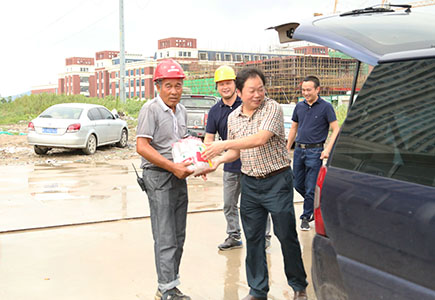 圖為仁和房產(chǎn)公司副總經(jīng)理鐘彪向施工人員遞送慰問(wèn)品 7月份以來(lái),我市持續(xù)高溫,給人民正常的生產(chǎn)生活帶來(lái)不少影響。眼下,文鼎苑項(xiàng)目正處工程進(jìn)度關(guān)鍵時(shí)期,為保障8月份首期開(kāi)盤(pán)目標(biāo),施工、監(jiān)理單位克服高溫天氣重重困難,通過(guò)調(diào)整工人上班時(shí)間避開(kāi)中午高溫時(shí)段等方法,確保高溫天氣下施工不換檔、不降速。目前,1號(hào)樓已進(jìn)入第2層樓面的施工,4號(hào)樓也進(jìn)入了第1層樓面的施工,預(yù)計(jì)8月份可以完成預(yù)售進(jìn)度。 仁和房產(chǎn)公司為了表達(dá)對(duì)一線工作人員的關(guān)懷和慰問(wèn),感謝他們?cè)诟邷靥鞖庀碌膱?jiān)守與敬業(yè),由公司董事長(zhǎng)、總經(jīng)理羅小將帶隊(duì),與經(jīng)營(yíng)班子其它成員一起來(lái)到文鼎苑樓盤(pán)工地進(jìn)行慰問(wèn)。在工地現(xiàn)場(chǎng)辦公點(diǎn),羅小將將防暑食品和藥品交送到施工和監(jiān)理單位的員工手中,并對(duì)他們的辛勞工作表達(dá)了真摯的問(wèn)候和衷心的感謝。 包啟曉