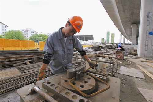馬進(jìn)學(xué)告訴記者,在鋼筋工這么多道工序里,將加工好的半成品鋼筋通過彎曲機制作成型是一道需要細(xì)心和耐心俱備的工序,無論是加工時的站位還是彎曲點的選擇都是對一個鋼筋工技藝的考驗,所以工作的時候必須集中精神格外小心。
