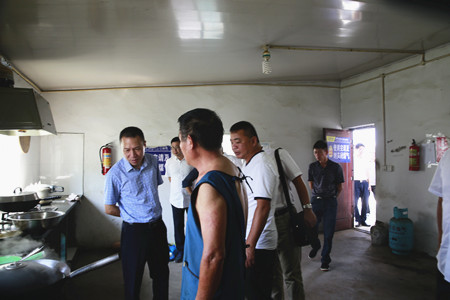 圖為集團副董事長、總經(jīng)理張建平檢查內(nèi)環(huán)北路(江口段)民工食堂