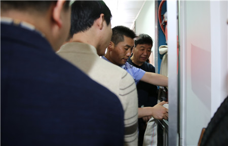 圖為員工學(xué)習(xí)防煙面罩的使用