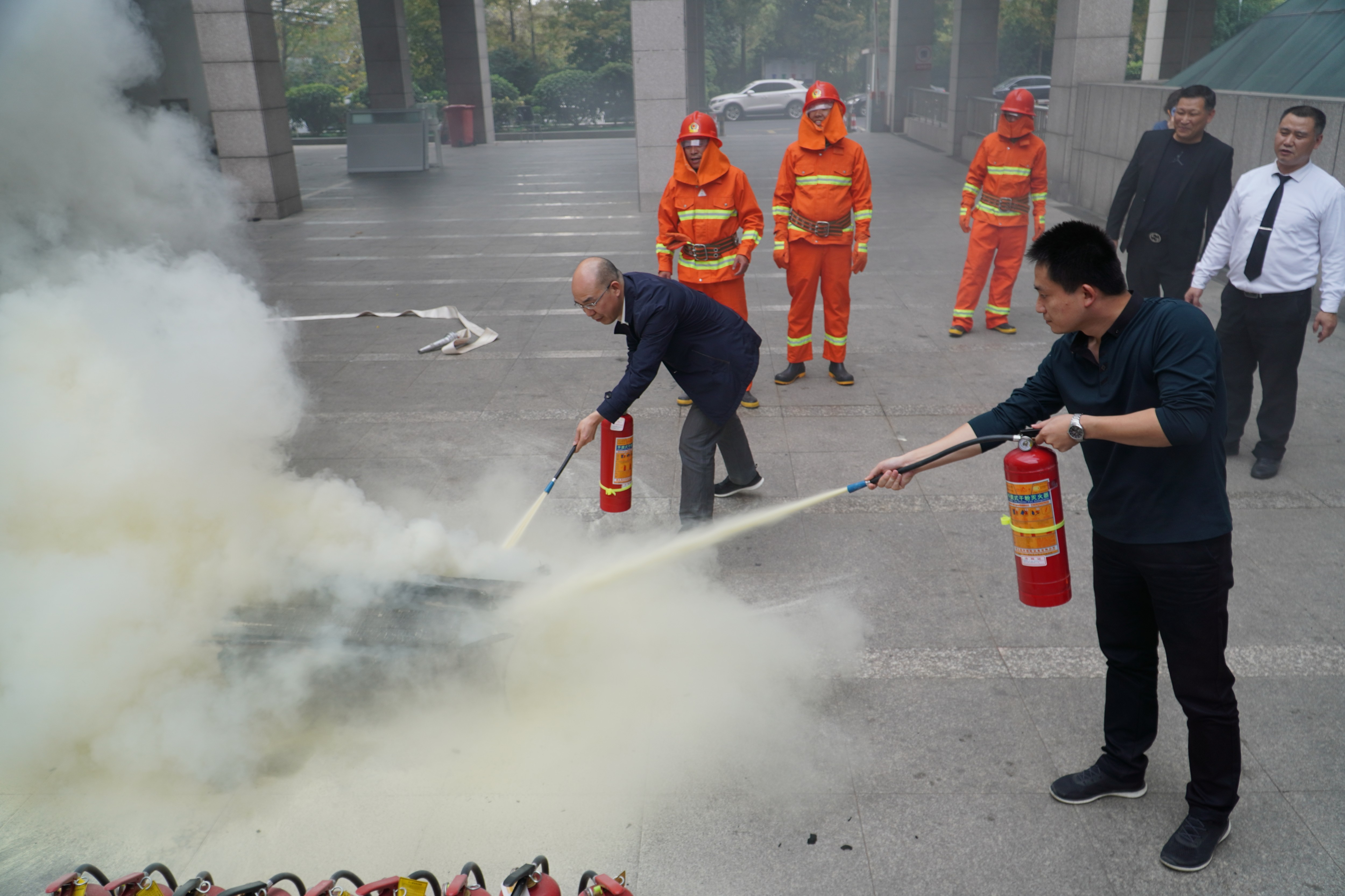 隨后,微型消防站拉練和滅火器滅火的現(xiàn)場實(shí)操于一樓空曠的室外進(jìn)行,大家積極互動、踴躍參加,達(dá)到了此次演練的預(yù)期效果。